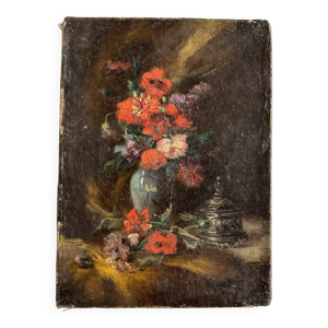 Peinture signée nature morte, peinture à l'huile, livres avec bougie
