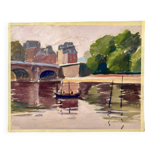 Peinture sur papier le sous bois brouillard d'automne signee jean paul barre