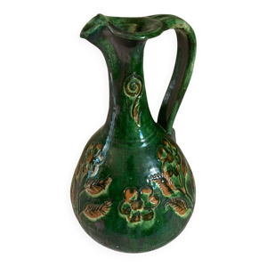 Pichet ancien en terre cuite à glaçure partielle – Poterie rustique XIXe