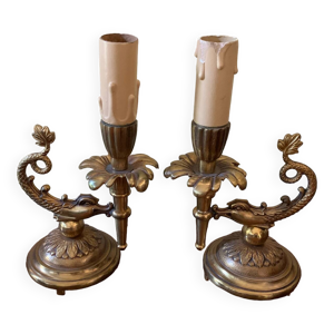 Pieds de lampe bougeoirs bronze doré ancien