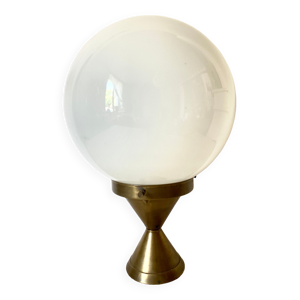 Plafonnier ancien français Napoléon III en laiton et bronze avec verre opalin