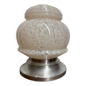 Plafonnier Art Déco, Obus ciselé/givré et laiton, année 30