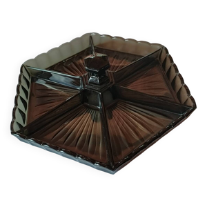Plat de service Art nouveau plaqué cuivre avec inserts en verre amovibles