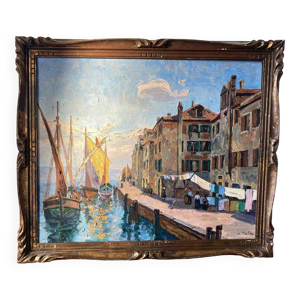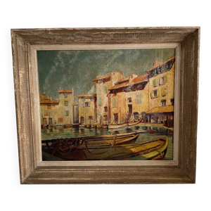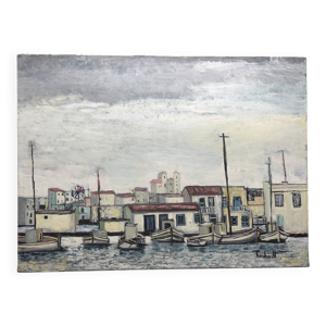 Port méditerranéen, huile sur toile technique couteau