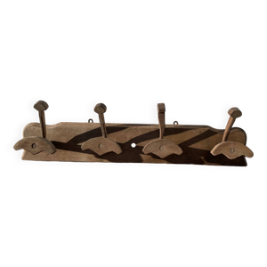 Porte manteaux en bois avec des patères en fonte