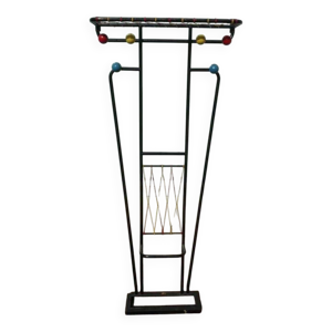 Portemanteau vintage des années 60 en fer et bois brutalist art déco debout France