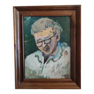 Portrait d'un vieil homme signé tableau vintage 1960