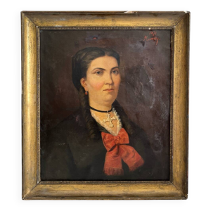 Portrait fin XIXe représentant une femme à la coiffe et à la dentelle