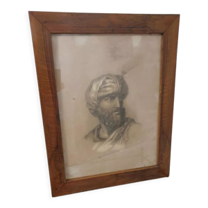 Portrait orientaliste d'homme au turban à la sanguine Paguenaud Jean-louis
