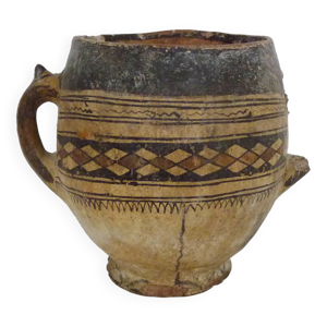 Poterie, vase kabyle titrée à décor géométrique polychrome, fin XIXe siècle