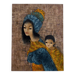 Raphaël : ''La mère et l'enfant'', copie du XIXe siècle, cadre doré