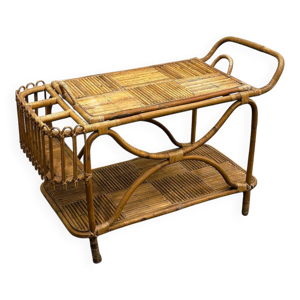 Rare grand porte-manteau sur pied en rotin et laiton style bohème 185 cm
