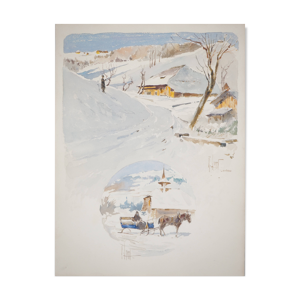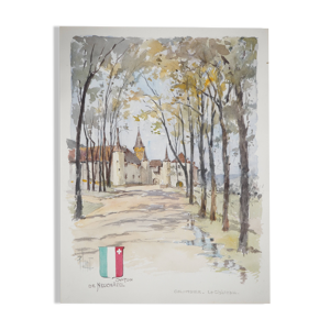 René leverd : les vagues contre les falaises, aquarelle originale signée
