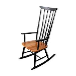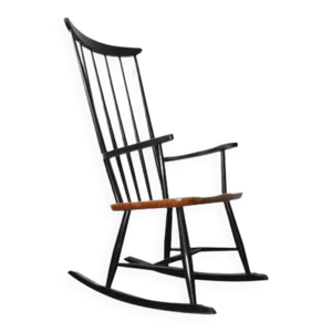 Rocking-chair du milieu du siècle avec cadre chromé massif et siège en tissu des années 70