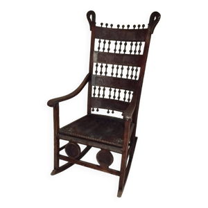 Rocking Chair XIXe Japonisant, laque verte et cannage