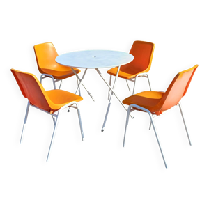 Salon de jardin vintage en fer forgé, table et 3 chaises