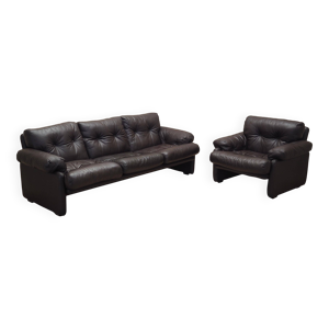 Salon lot design en cuir – Steiner Paris – piètement aluminium – 1970/1980