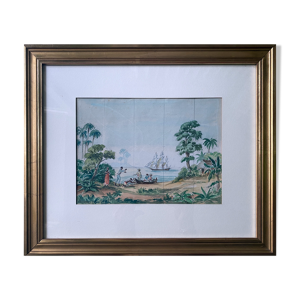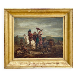 Scène d'intérieur ''Couturière à la table de la cuisine'' huile sur bois 50s
