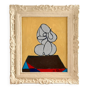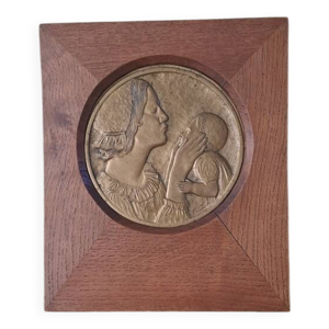 Sculpture maternité signée, terre cuite patinée bronze 60s