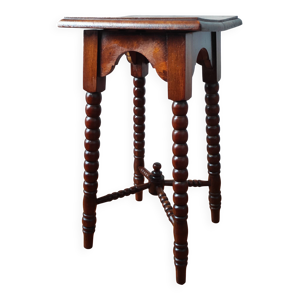 Sellette bois et marbre vintage, guéridon bois tourné Louis XIII