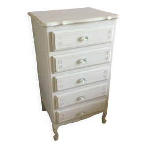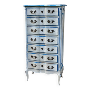 Semainier ancien style louis xv bois 7 tiroirs & poignées métal vintag