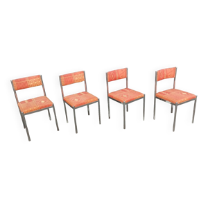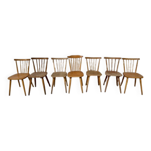 Série de 25 anciennes chaises bistrot Baumann vintage en bois courbé assis Skaï ou bois
