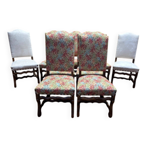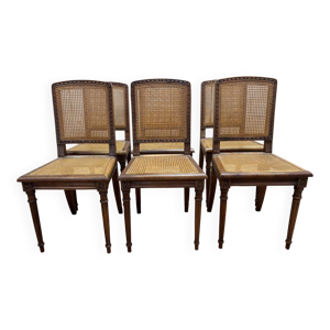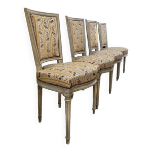 Série de 6 chaises Louis XV a haut dossier en bois cérusé vers 1900