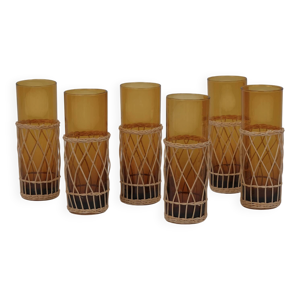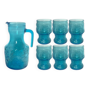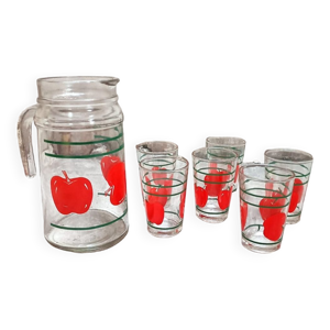 Service à limonade art nouveau pichet et 6 verres peints à la main en verre de Bohême début du 20ème siècle