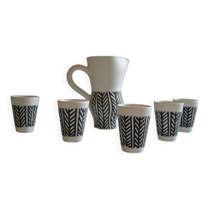 Service à liqueur Roger Capron bouteille et 6 godets en céramique Francaise Vallauris
