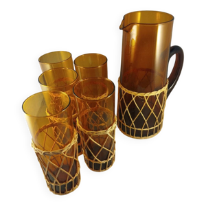 Service carafe et 6 verres ambrés