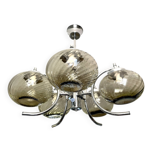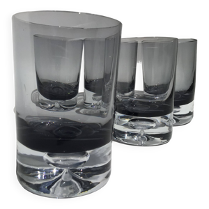 Set de 17 verres fumés noirs sur pied à gravure géométrique - années 70