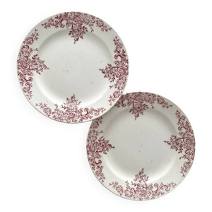 Set de 2 assiettes Choisy le roi , terre de fer , motif floral, fin XIXème