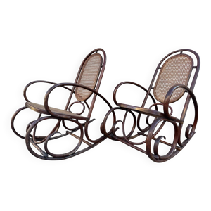Set de 2 Rocking-chairs Style Thonet Cannée