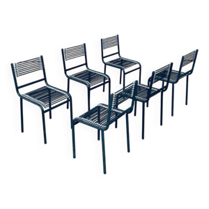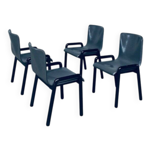 Set of Postmodern Italian Design Leather Dining Chair Set by Segis, 1990s