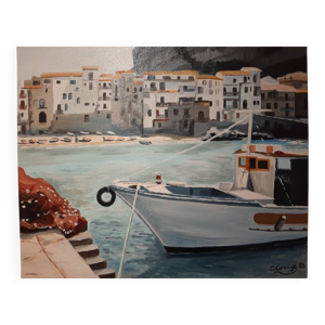 Sicile Pluchino Del Chiaro : vase Vintage en céramique a décors peints