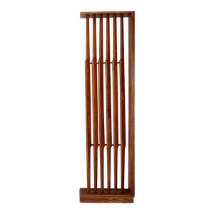 Slatted wood panel room divider or slatted coat rack with 10 mobile hooks