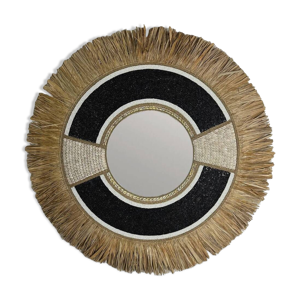 Soleil artisanal en terre cuite terracotta décoration murale vintage bohème