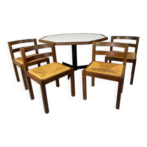 Suite de 6 chaises modernistes en chêne massif à hauts dossiers années 50's