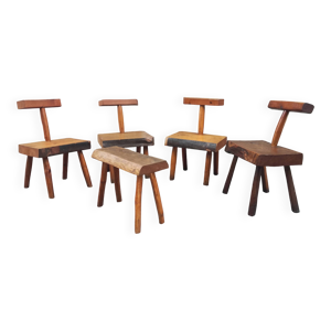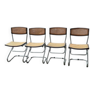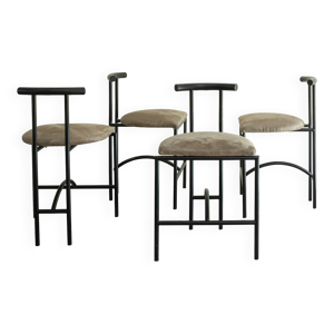 Suite de quatre chaises en fer forgé Piétement en X couché Assise et dossi