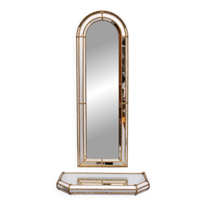 Support de console mural en bois antique avec sculptures géométriques