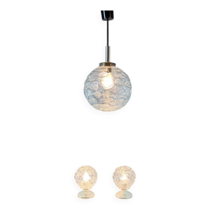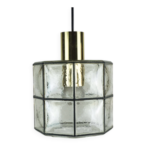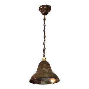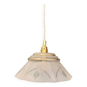 Suspension abat-jour vintage en verre dépoli avec frise dorée