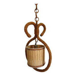 Suspension corde + boule osier