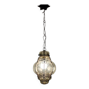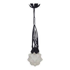 Suspension en Fer Forgé et Pâte de Verre, Art Nouveau / Art Déco, Début XXe