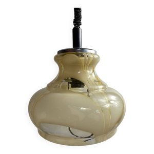 Suspension en verre ancien peint rouge et blanc. douille et cable neuf