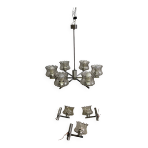 Suspension et appliques Doria en verre dépoli et appliques murales