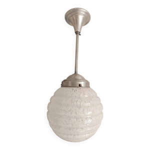 Suspension globe en verre moulé Art Déco, 1930