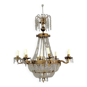 Suspension montgolfière en laiton et pampilles en cristal