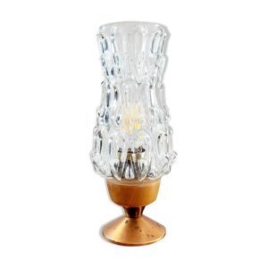 Suspension space age métal et bois, lustre 3 globes, lustre sputnik, lampe