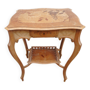 Table a ouvrage de style Louis XV en bois marqueté XX siècle