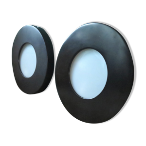 Table avec ancien hublot de bateau en laiton avec piètement en fer / 100 x 85 x 76 cm